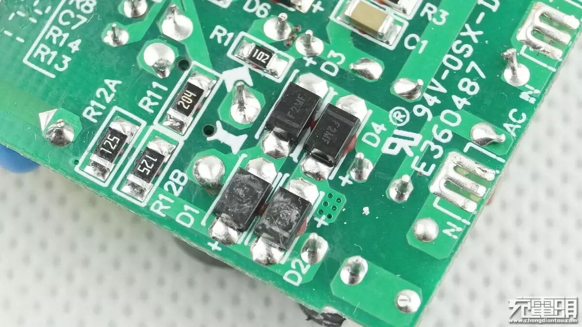 蓝色电容主要用来滤除高频干扰。USB TYPE-C输出子板后半部分使用绝缘胶带包裹。