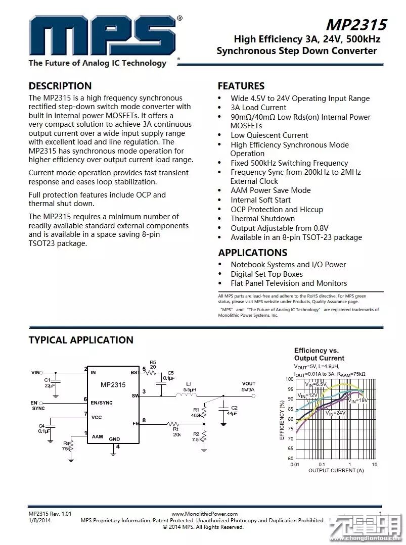 丝印AGCF是美国MPS MP2315同步整流降压IC,工作范围4.5V~24V,最大支持3A,工作频率500kHz。