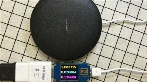 第一款,目测是三星的无线充电器,充电头同样是三星,视频内容显示,稳定之后输入端电压约5.32V,电流约1.76A,功率9.5W左右。与三星S8+的快充基本持平,差不多是目前苹果无线充的2倍。
