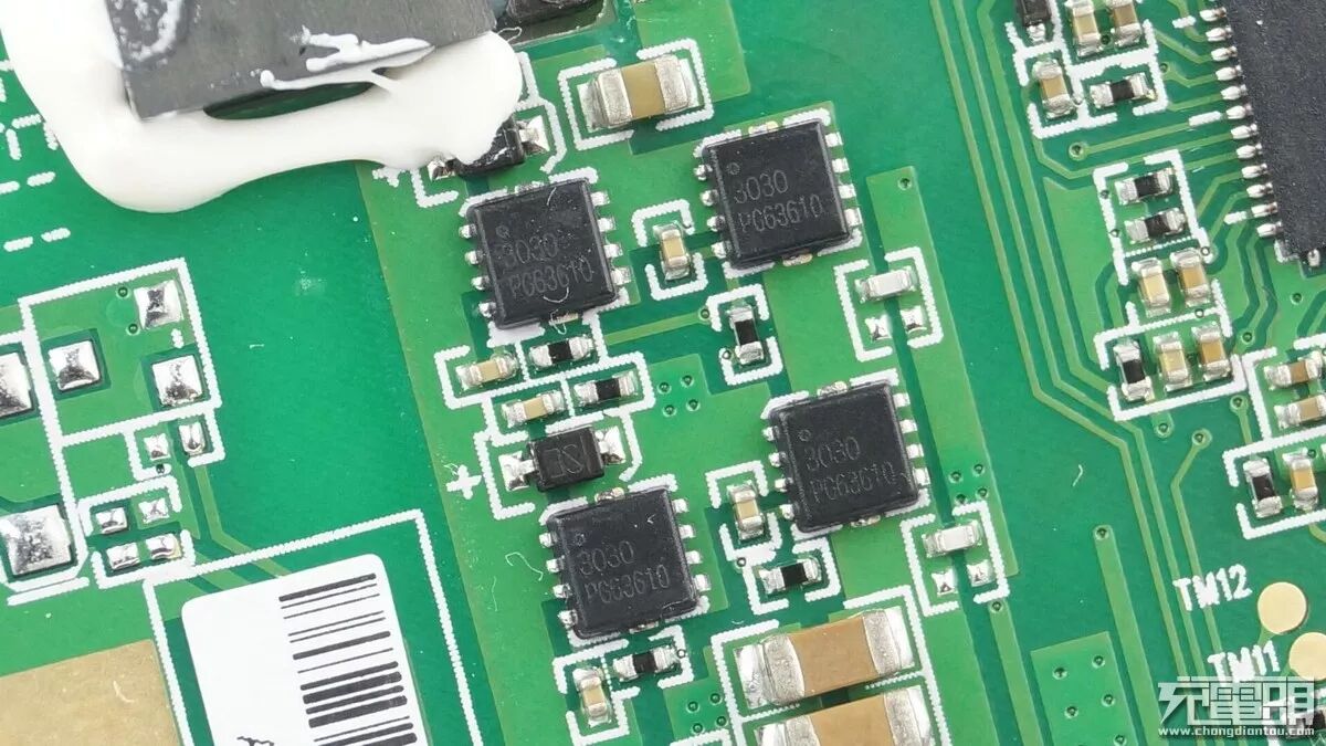 丝印为CP-SC2的芯片品牌来自易冲无线,为整个无线充的核心,这是一颗专门为无线充电应用设计的单输入电源管理芯片。通过串口总线,CP-SC2可以与外部MCU通信,从而获取信息来驱动电池充电芯片。集成于芯片内部的功率管驱动可以直接控制外部功率管的开关,芯片同时内置了检测电路,当检测到过流、过压等情况时,会自动关闭功率管。