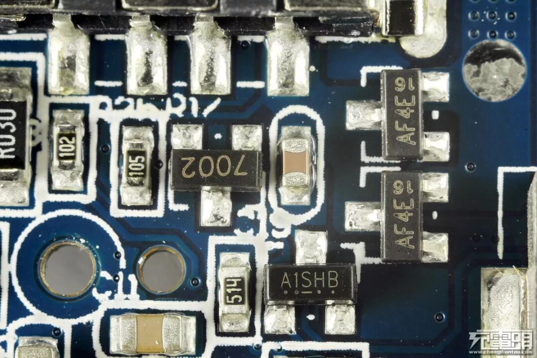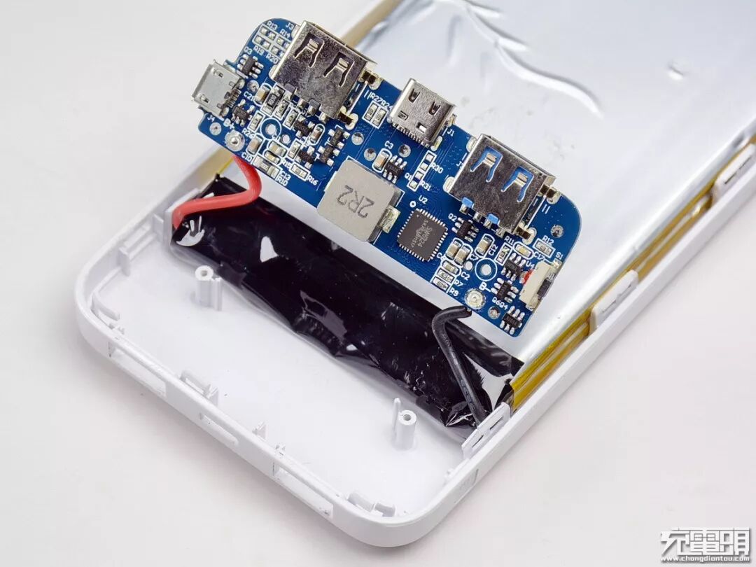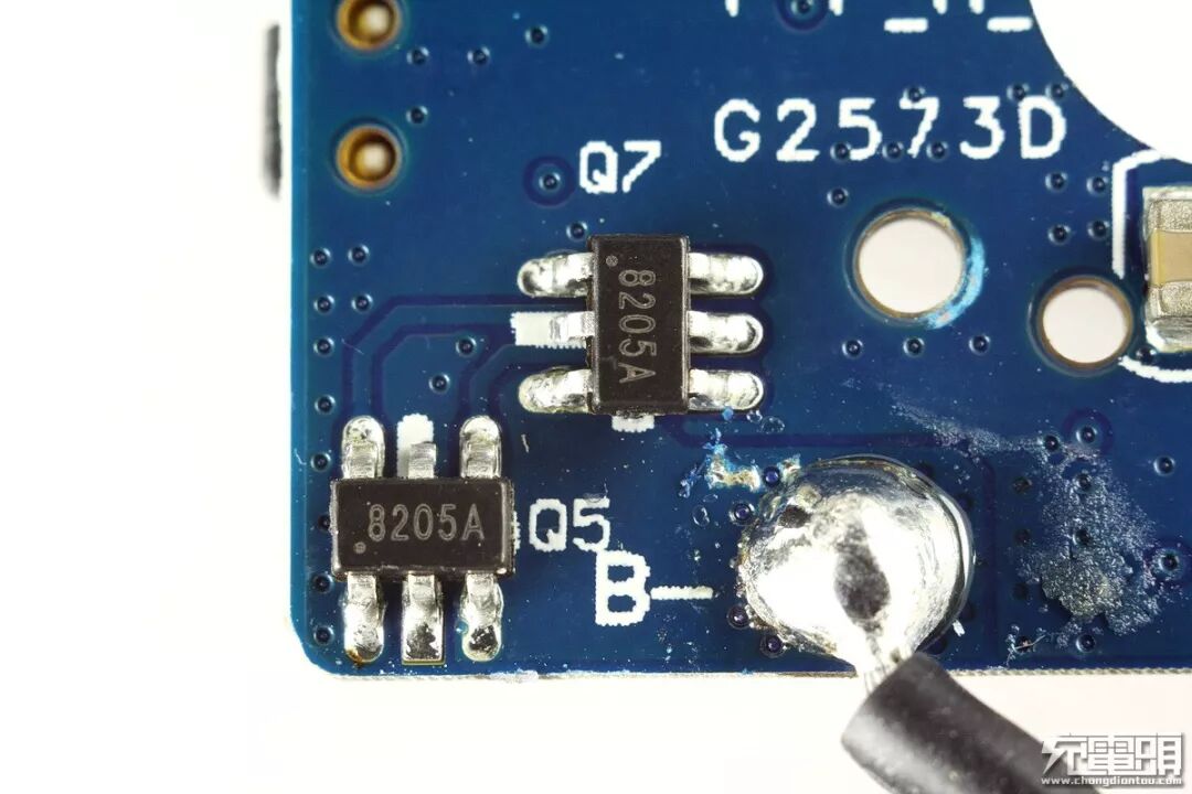 另外从应用电路上来看,每个输出接口都会又串入一只8205A也会增加一点内阻,加之移动电源本身的输出电压就不高,线补不给力,所以5V输出的电压偏低,某些设备的充电效率会下降。不过MOMAX摩米士IP65移动电源主打快充,这个也不算啥了。