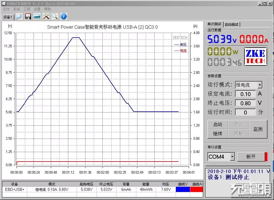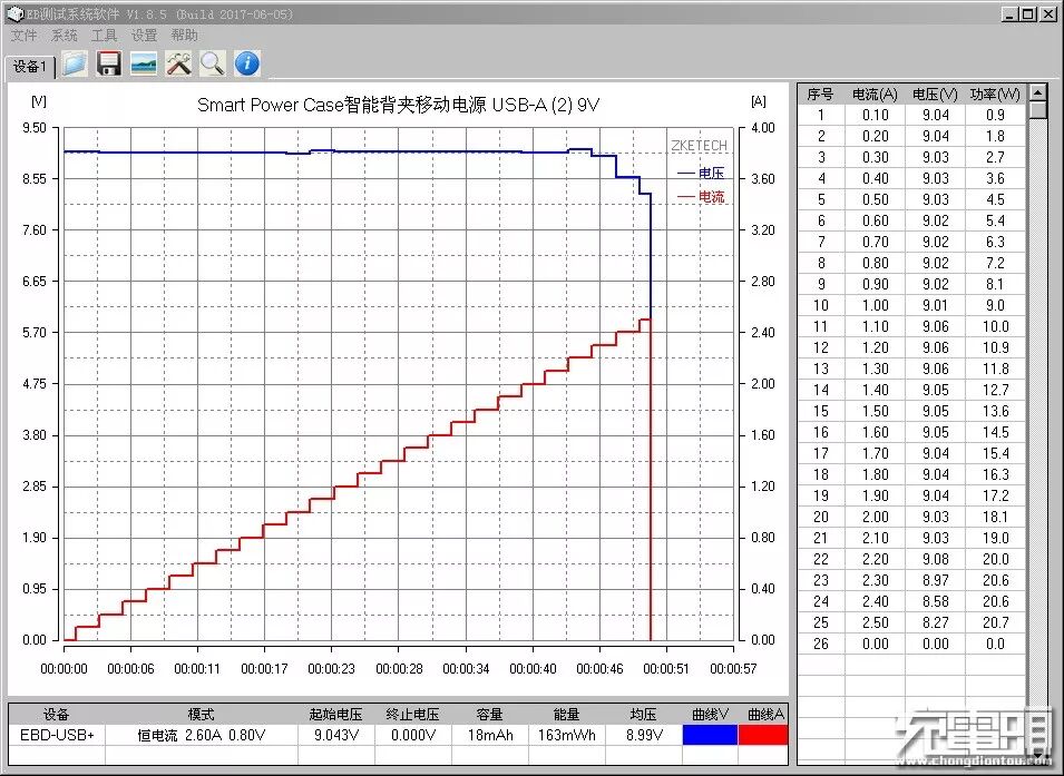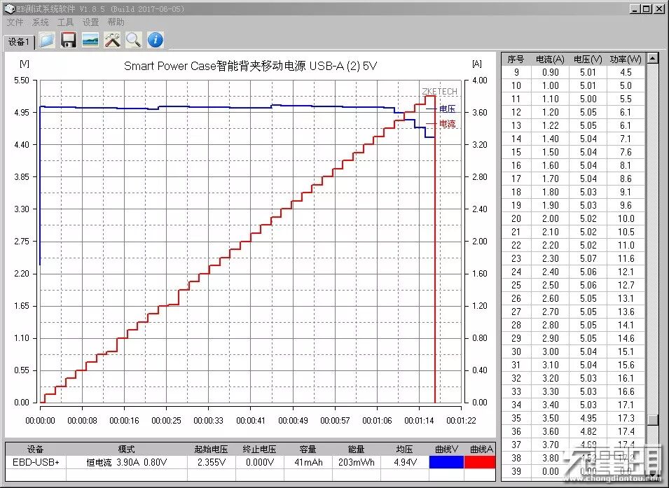 1、USB-A 5V低压慢充输出口EBD步进测试: