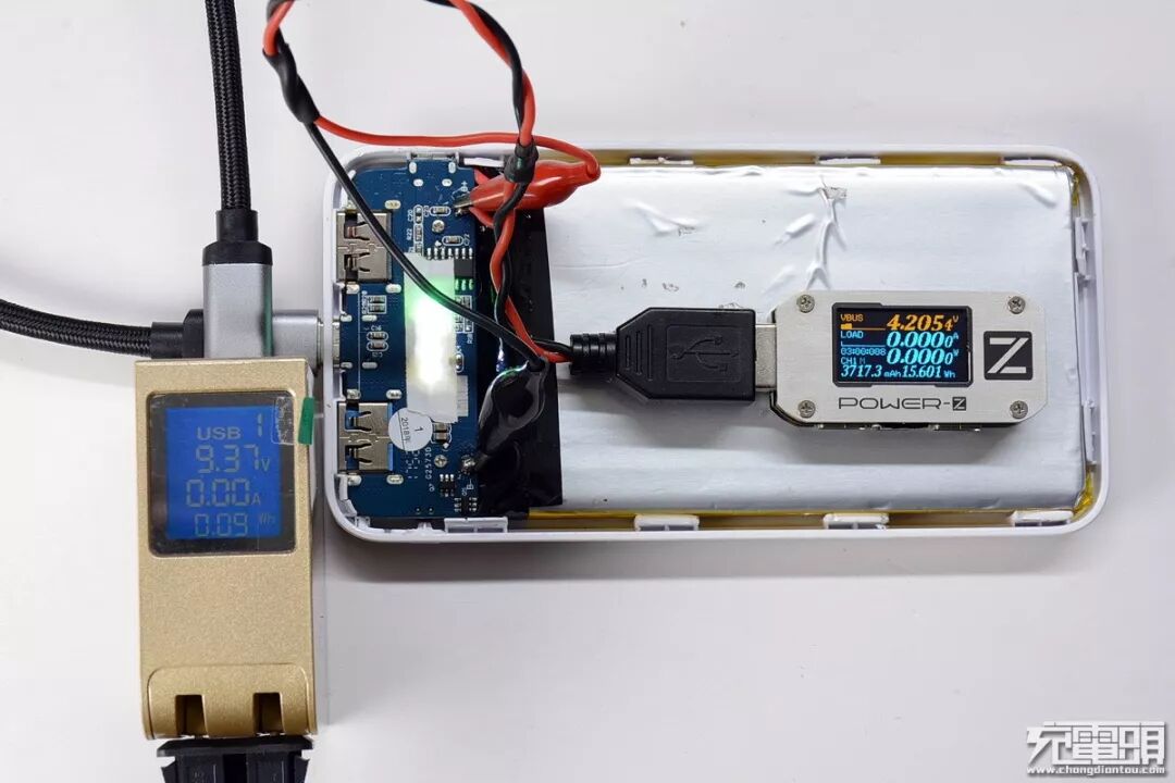 由于串接了一条一米长的Type-C线和ChargerLAB POWER-Z KM001 测试仪做PD诱骗,增加了线阻和测试仪内阻、接触电阻导致电压降低不少。