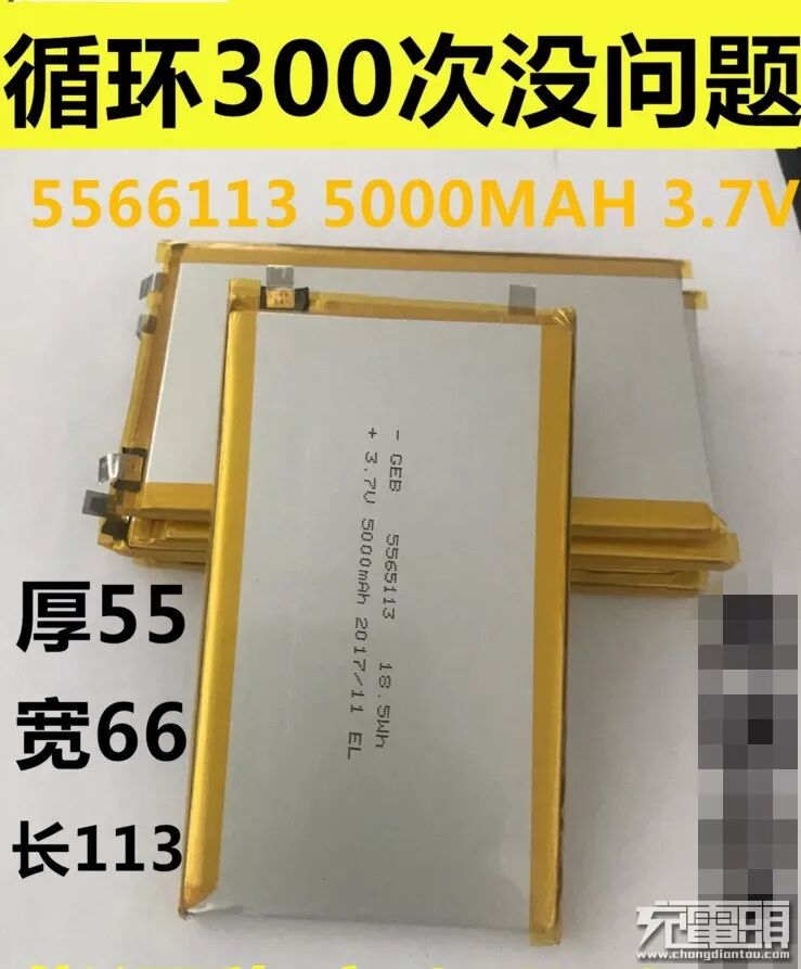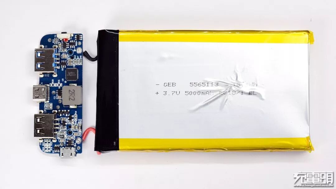 电芯品牌为GEB,5565113,18.5W,3.7V 5000mah 聚合物锂电池,深圳市中美通用电池有限公司出品,2块组合而成10000mAh。