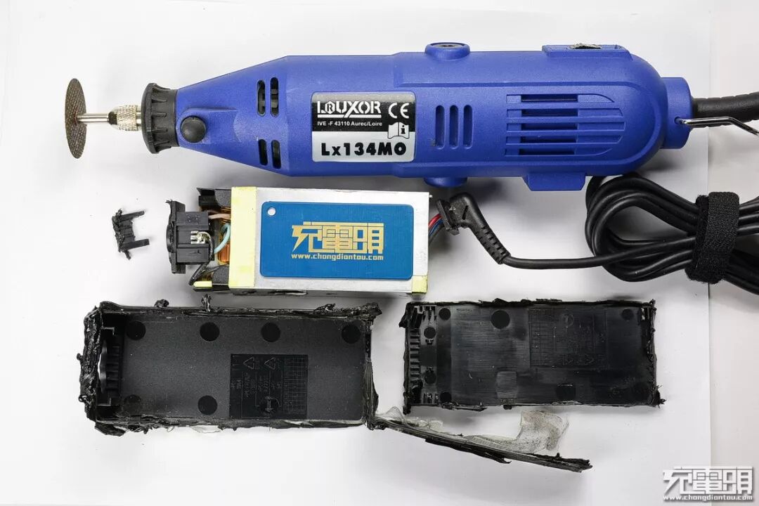 外壳较厚,一开始使用金属撬棒沿背面缝隙锤砸切入,但碰到金属屏蔽罩,弄弯了2只撬棒,情急之下上暴力手段:电磨切割!