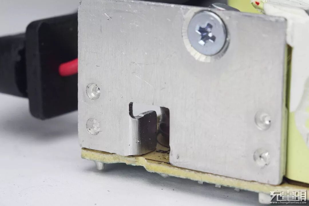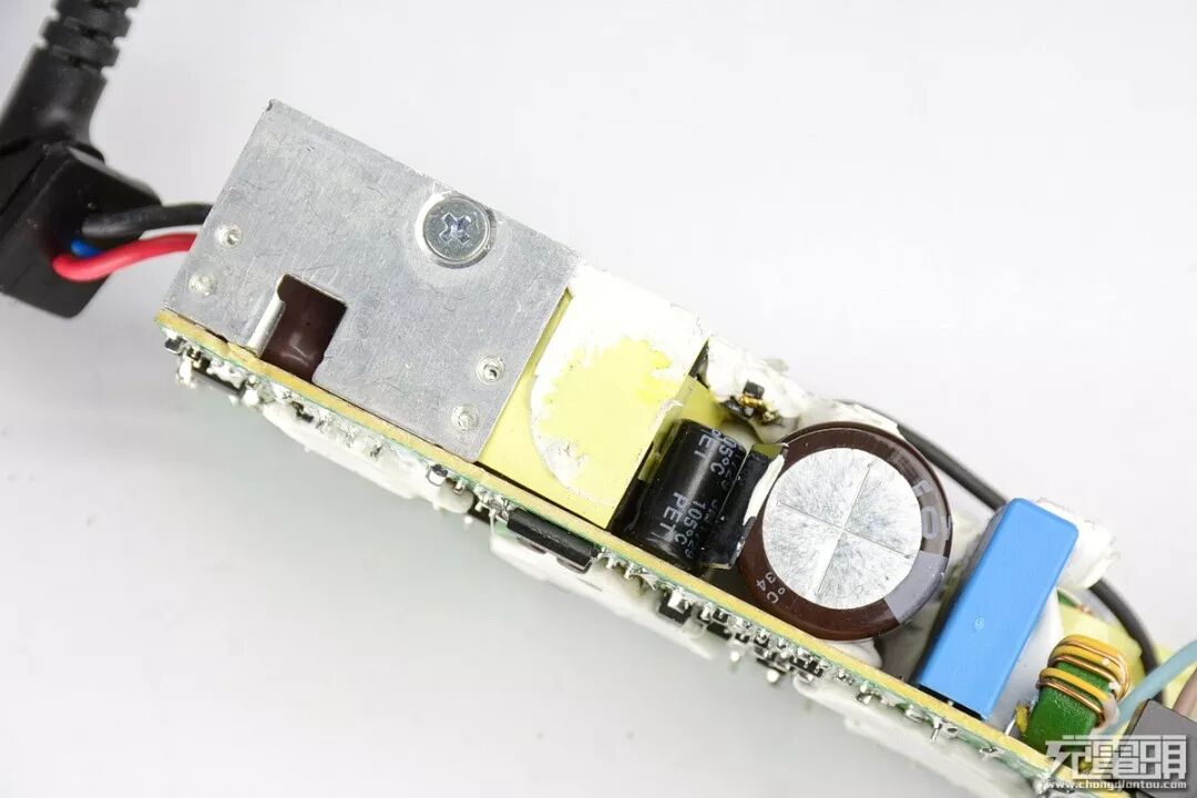 散热片临近电容位置开了窗口,此处散热片还有一个铆接焊针,由于距主滤波电容较近,又加贴耐高温绝缘胶带防止短路。