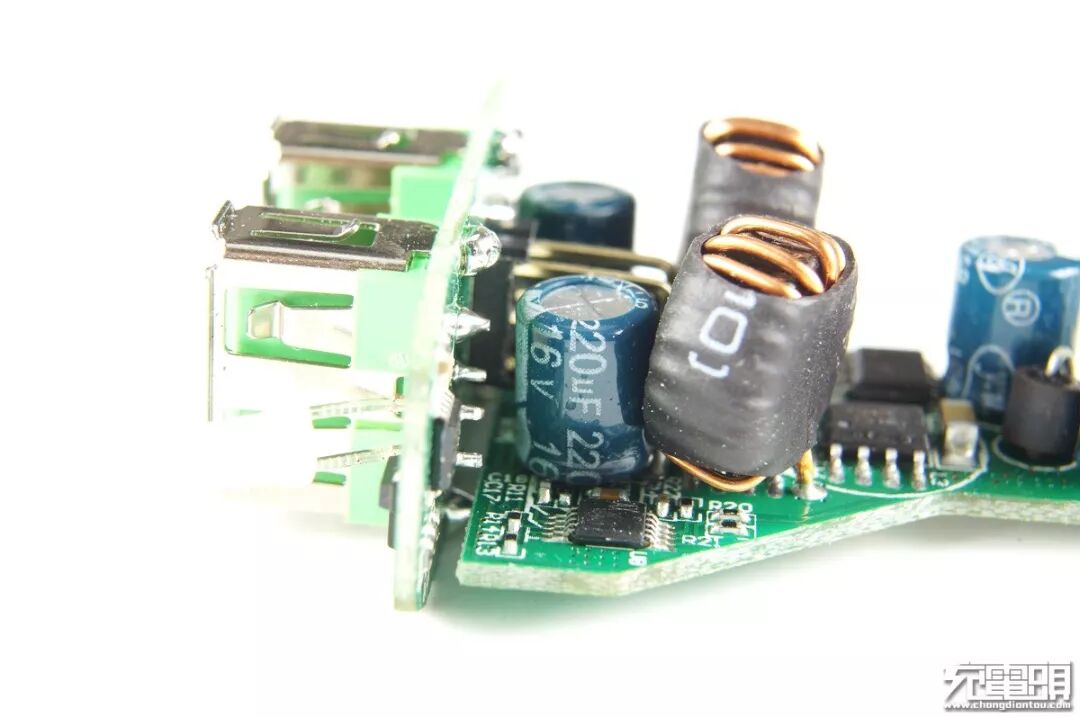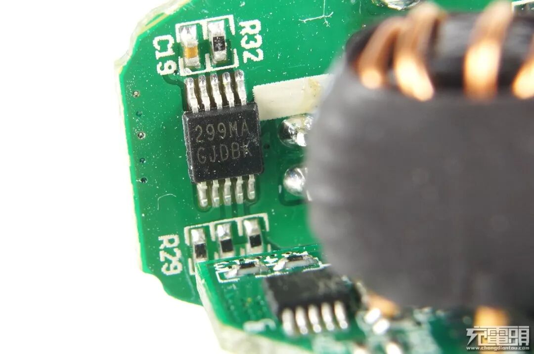 这是 IBD 307 双路输出里面的其中一路,方案介绍如下:选用了2颗AMS4004 MOS + AX3071 PWM主控芯片 +精拓Fintek F75299 快充握手识别 + 一颗16V220uf 电容 + 一颗电感组成独立的输出回路。