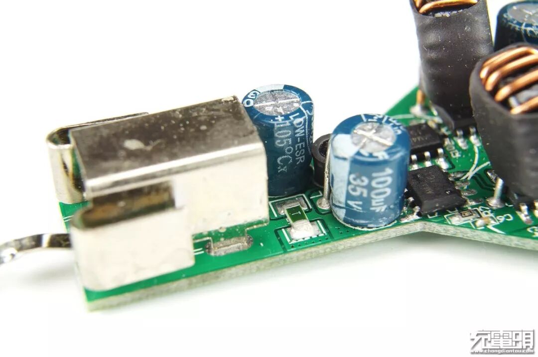 考虑到大车可以去到24V,加上点火瞬间冲击等等因素所以输入端使用了2个35V100uf电容进行滤波,绿色的T字是贴片保险丝。