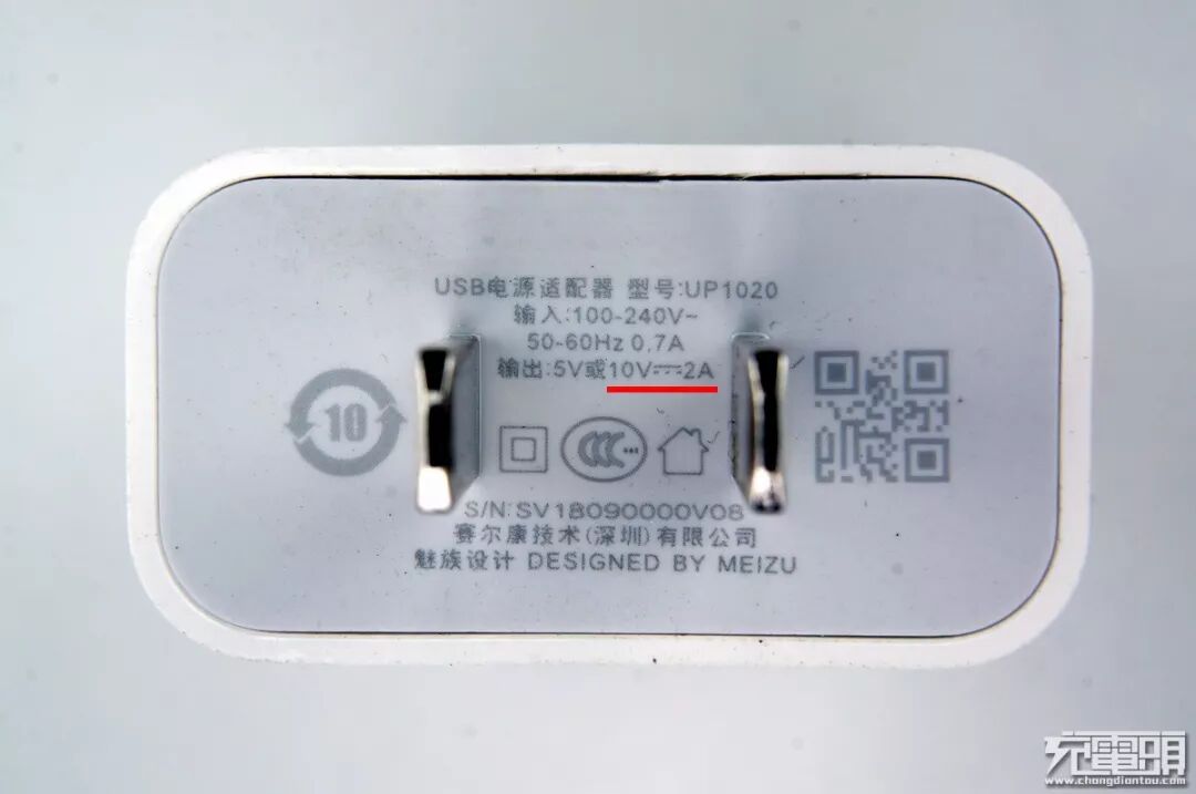 型号:UP1020;输出:5V或10V2A;制造商:赛尔康技术(深圳)有限公司。10V电压档位比较特殊,并不是常规的MTK PE电压档位,推测搭载的可能正是魅族Super mCharge超级快充的量产版本。