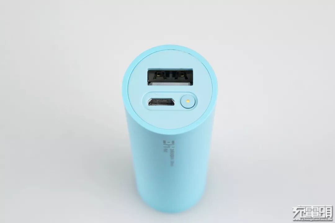 面板部分,紫米移动电源MINI使用了USB-A输出接口+MicroUSB输入接口搭配通用性强,一个三色LED指示灯的圆形的电量激活按钮,还有紫米家族的特色功能:支持双击小电流模式,可以为蓝牙耳机手环等设备充电。