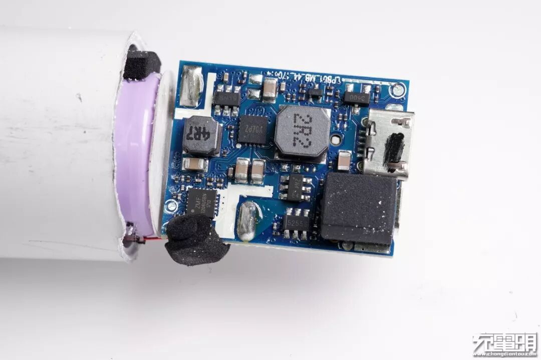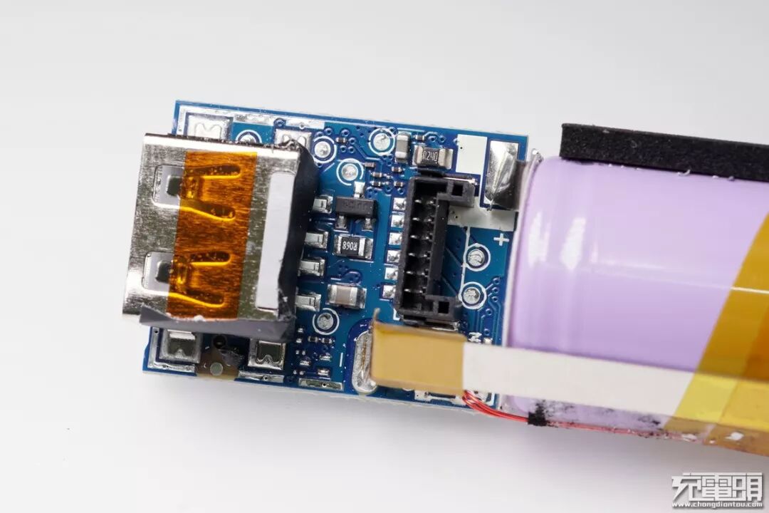 电芯是非常常见的LG F1L,满电电压4.2V单节容量3350mAh,紫米壳体与包装上标注参数为“3000mAh”,可能是故意往小去标注,让消费者觉得电量比预期值高。