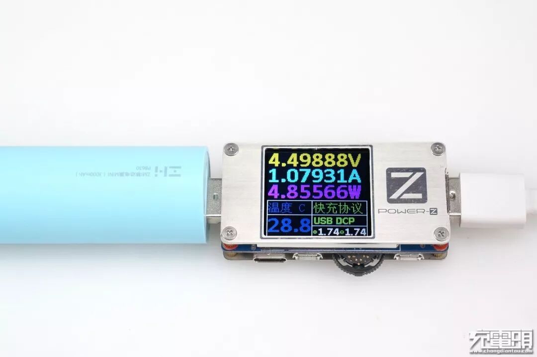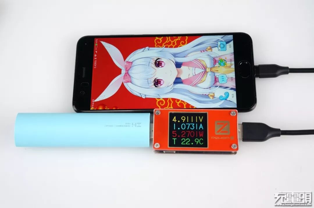POWER-Z KT001监控实际上机充电情况,紫米移动电源MINI对小米6进行充电,功率为4.91V1.0A,自适应正常不会被拉爆。