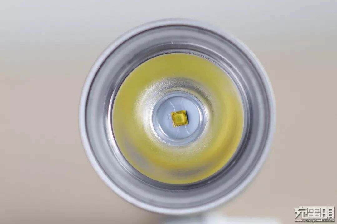 整个手电是铝合金材质,上面是银色,下面大部分位置是米白色。