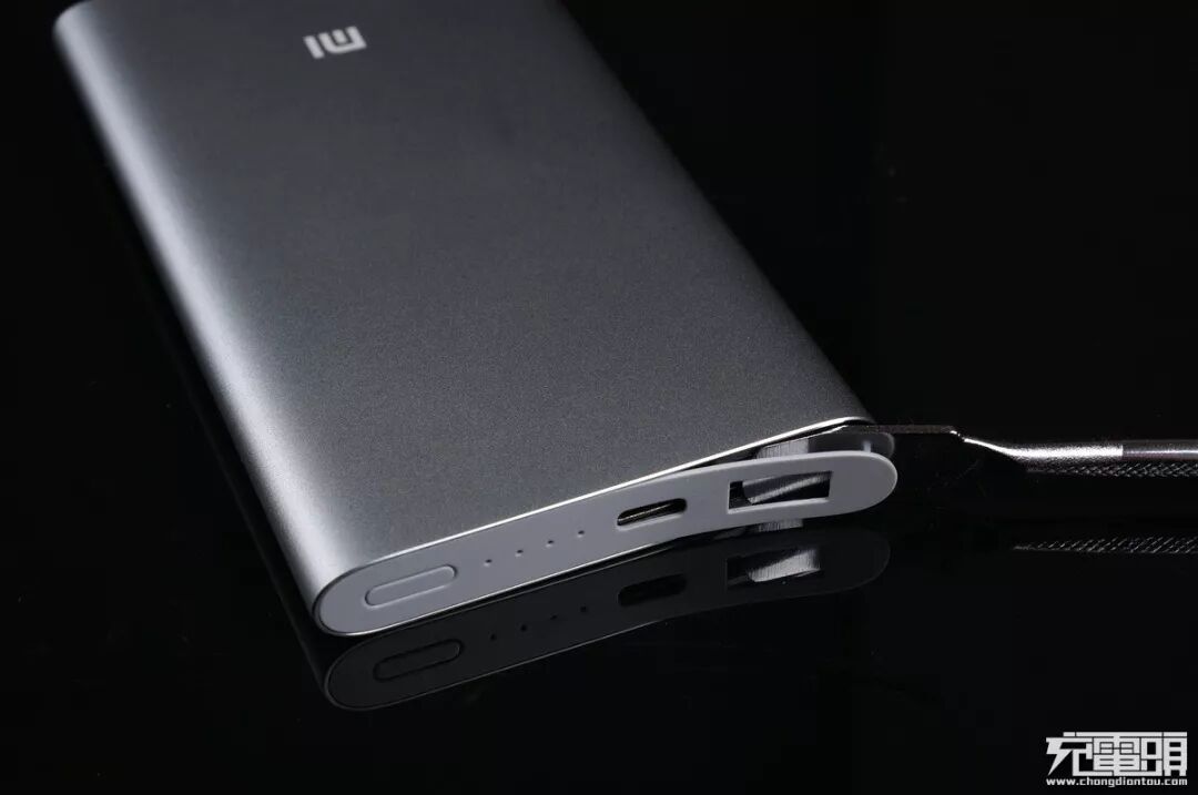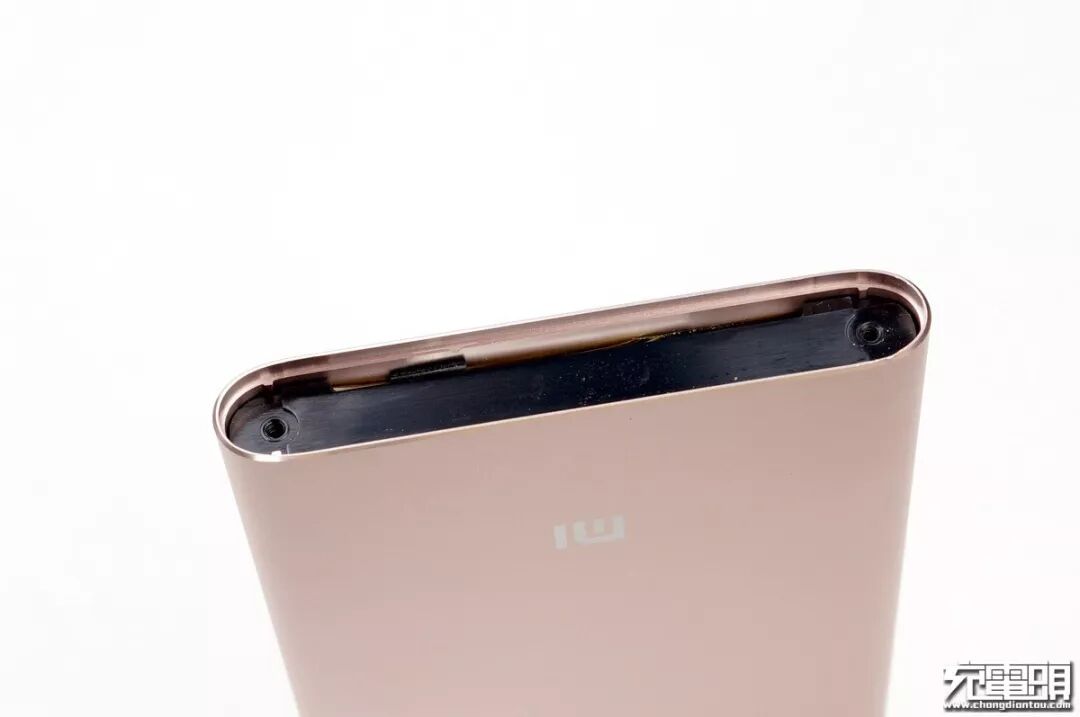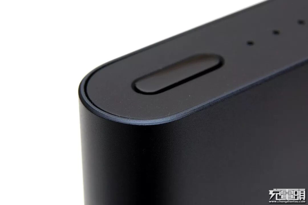 边缘做了倒角处理,壳体边角倒角后再全面喷砂电镀(PLM01ZM高配版是先喷砂电镀后再倒角,所以高配版会有亮边效果)。值得一提的是这个电量激活按钮继承了以 往小米移动电源高配版上的”小电流充电功能”,双击后可以在2小时内给蓝牙耳机、手环等小电流设备充电,不会因为过低的充电电流阈值触发自动关机。