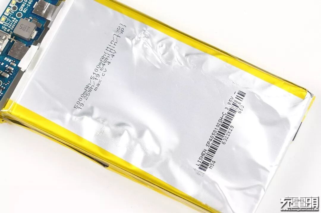 电芯方面,小米PLM01ZM采用两块力神LISHEN的超高压高密度聚合物电池,3.85V均压,充满电压为4.40V,相同体积的情况下可以提供更大的能量密度比与高电压平台拥有更好的放电效率。电芯生产批次M54。