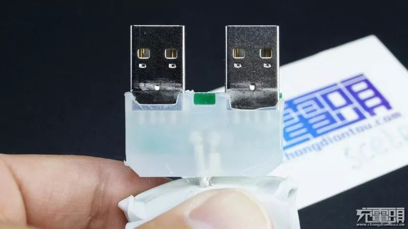 双U电脑适配线内部一体式封胶,只能破坏外壳将其内部电路取出。