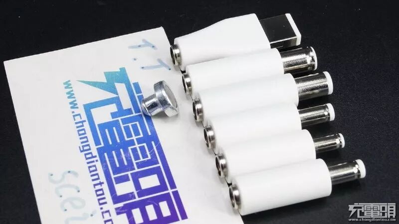 配备了六枚转接头,涵盖了大部分常用笔记本电源插头规格。