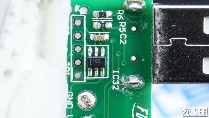 型号T10E的IC,从针脚空位来看他还负责控制电源工作指示灯。