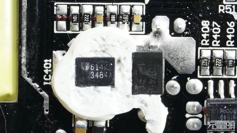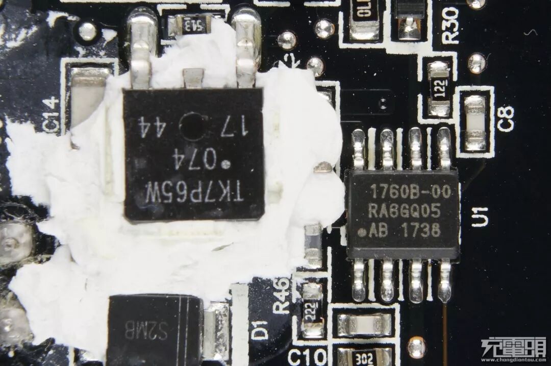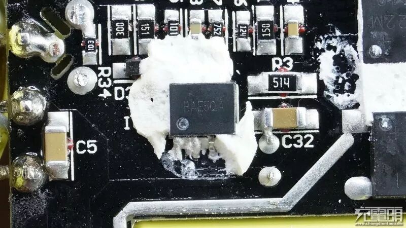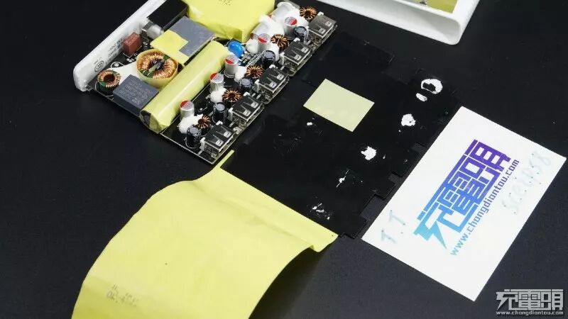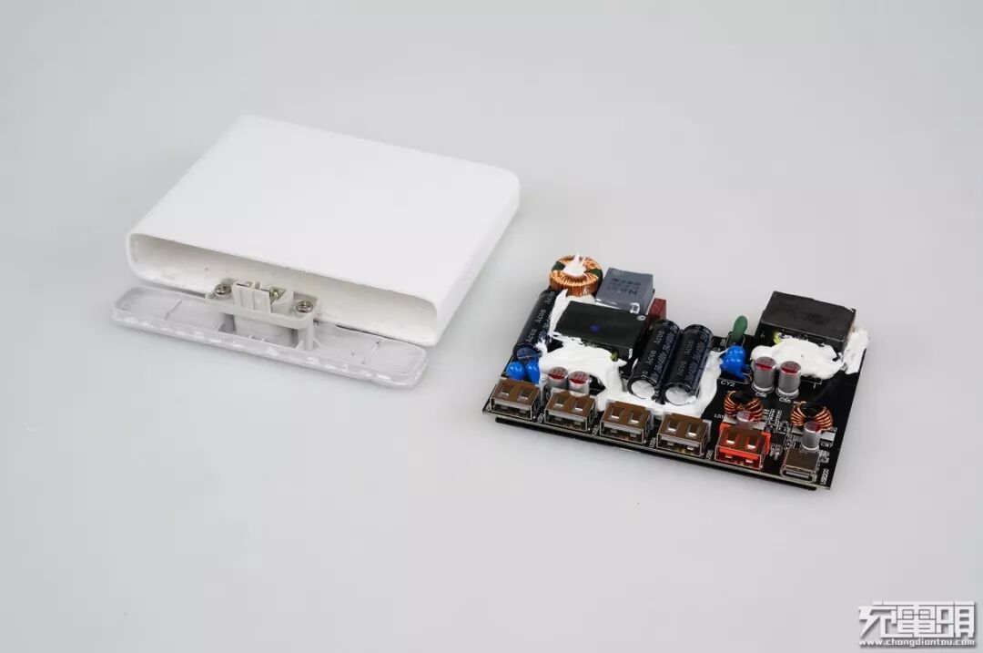 据充电头网分析,部分网友反映这个充电器容易发热,一是塑料外壳导热散热不如金属外壳好,二是内部这种绝缘处理把整个电路都包裹起来热量无法迅速有效的传导到外壳散发出去造成的。