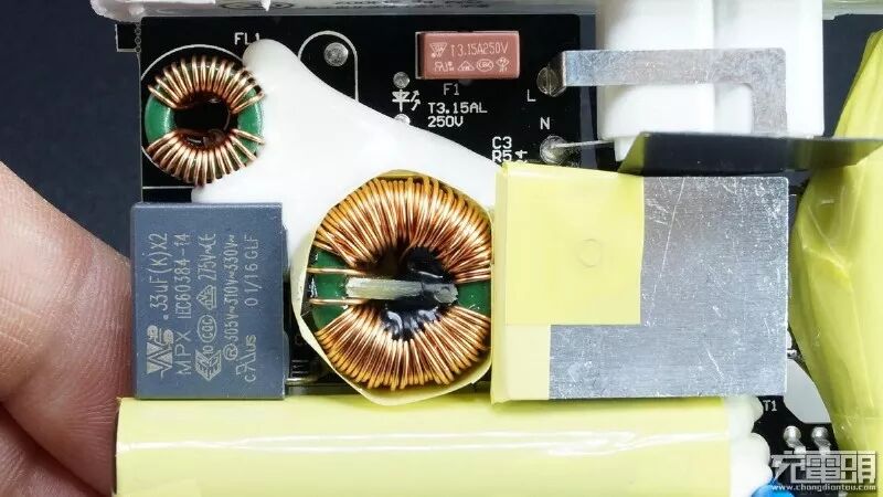 共模电感,X电容,保险丝一应俱全。