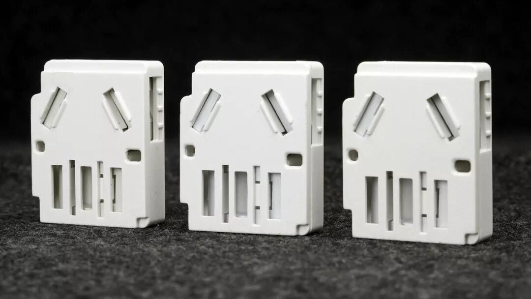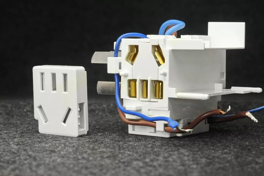插座模组是灰色阻燃塑料材质。