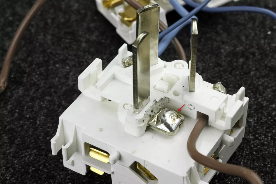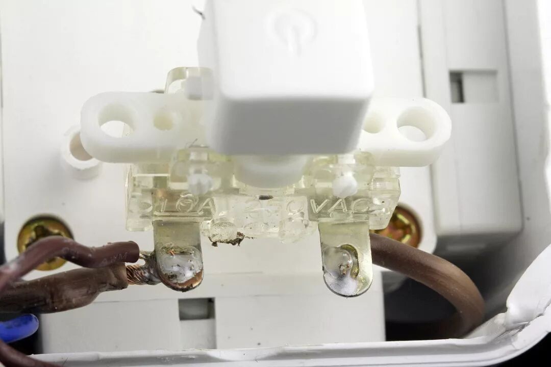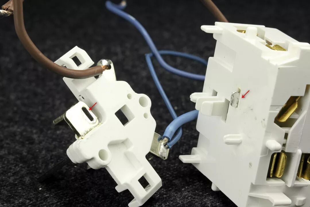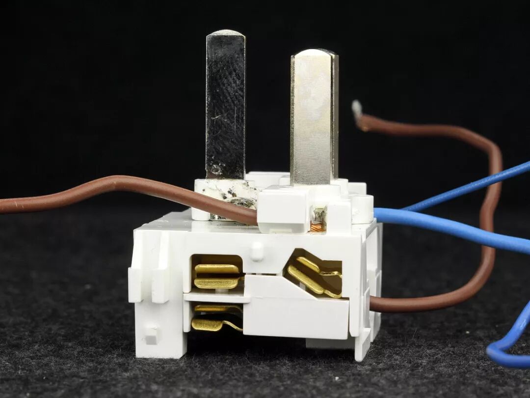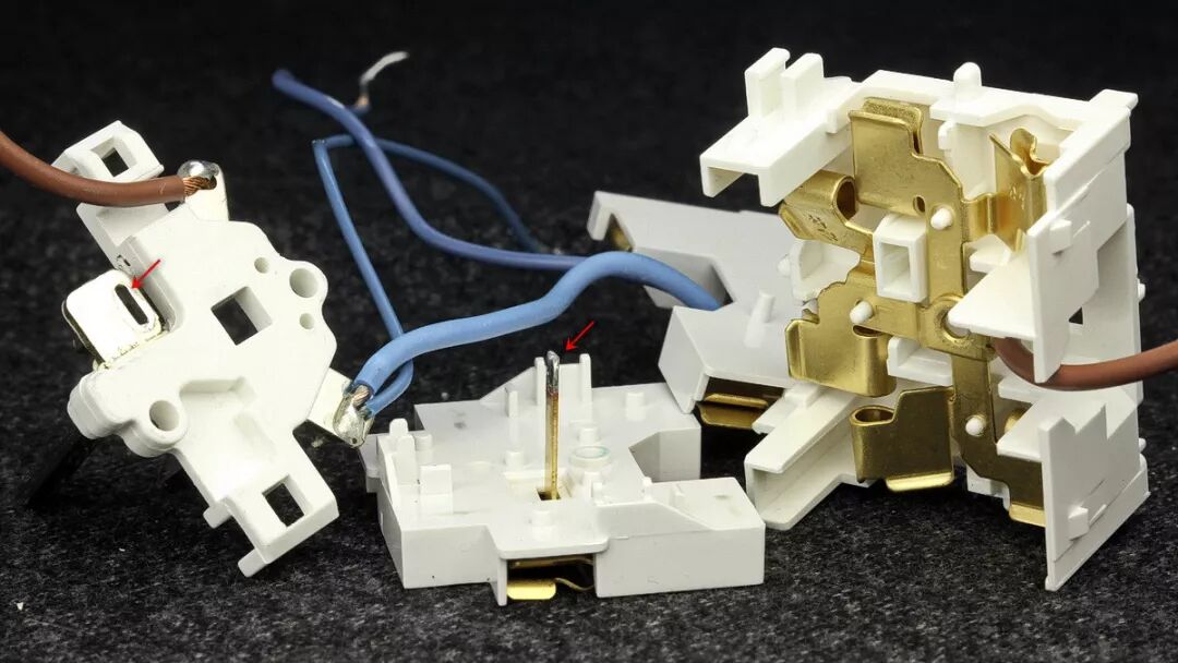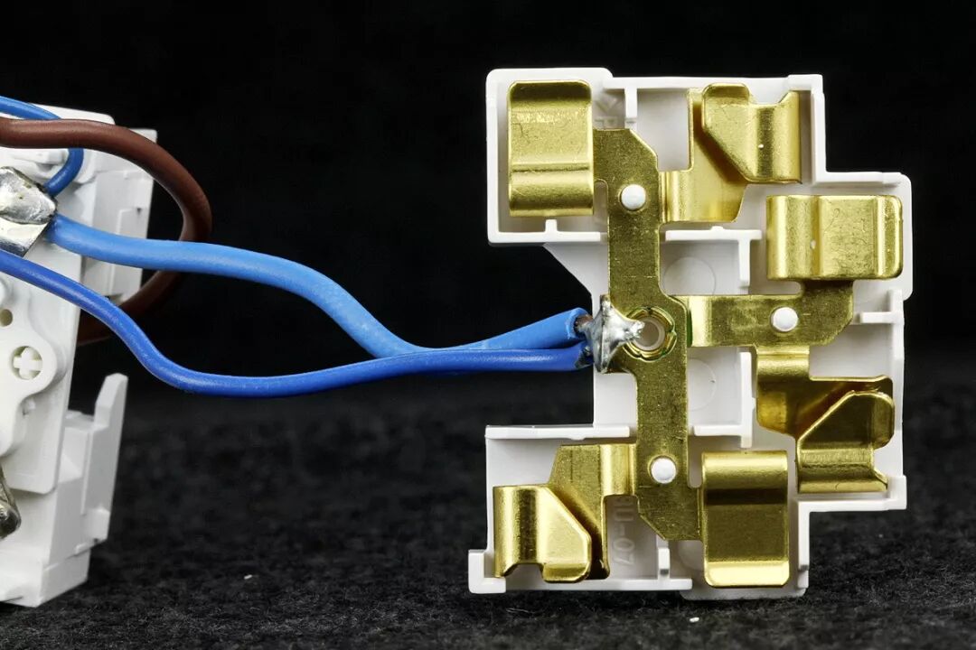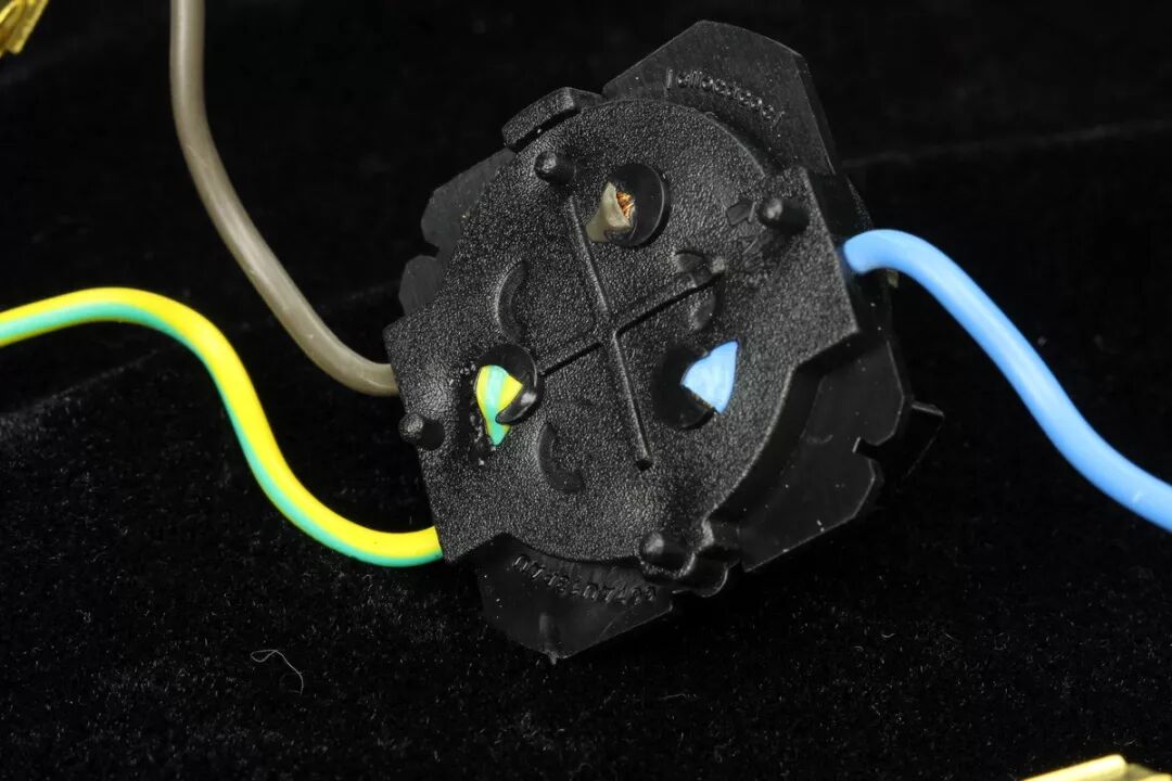 位于开关模块中间位置的棕色引线为在开关之前的直通火线,来自于输入插头的L火线端子。