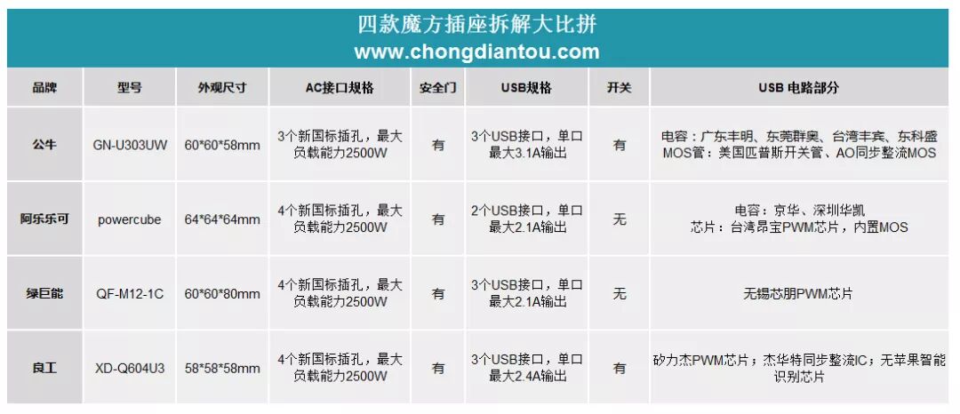 三、四款热销USB魔方插座拆解大比拼