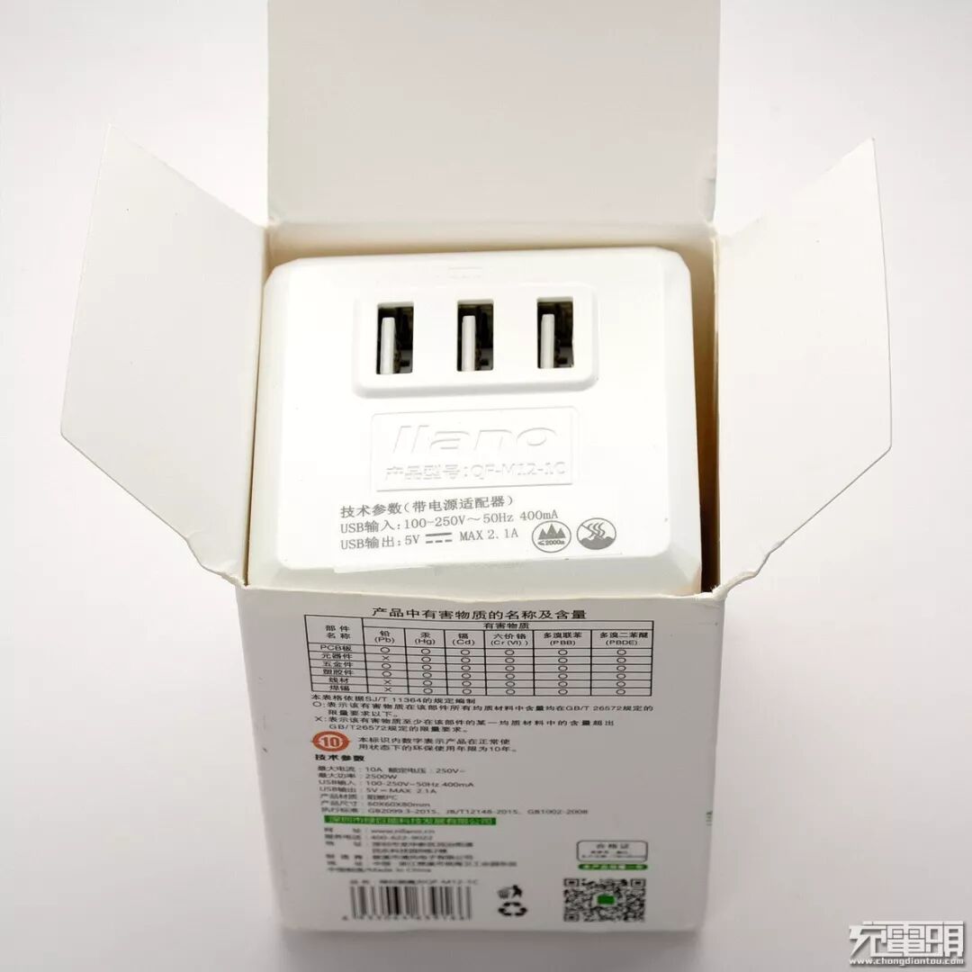 绿巨能这个品牌也是比较熟悉的,一直耕耘在消费类数码产品行业,此前就拆解过多款绿巨能的数码配件,包括手机充电器、USB车载充电器、无线充电器等等。这款魔方插座有4个交流输出接口并且配置了3个USB输出接口,并且USB接口采用了智能识别技术,支持苹果2.1A充电。