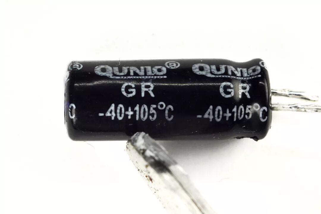开关模块上的35V、100μF滤波电容,是名不见经传的QUNIO,来自于东莞市群奥电子有限公司。工作温度-40+105℃,不过这仅是阻容降压的低频场合,性能要求不高,够用。