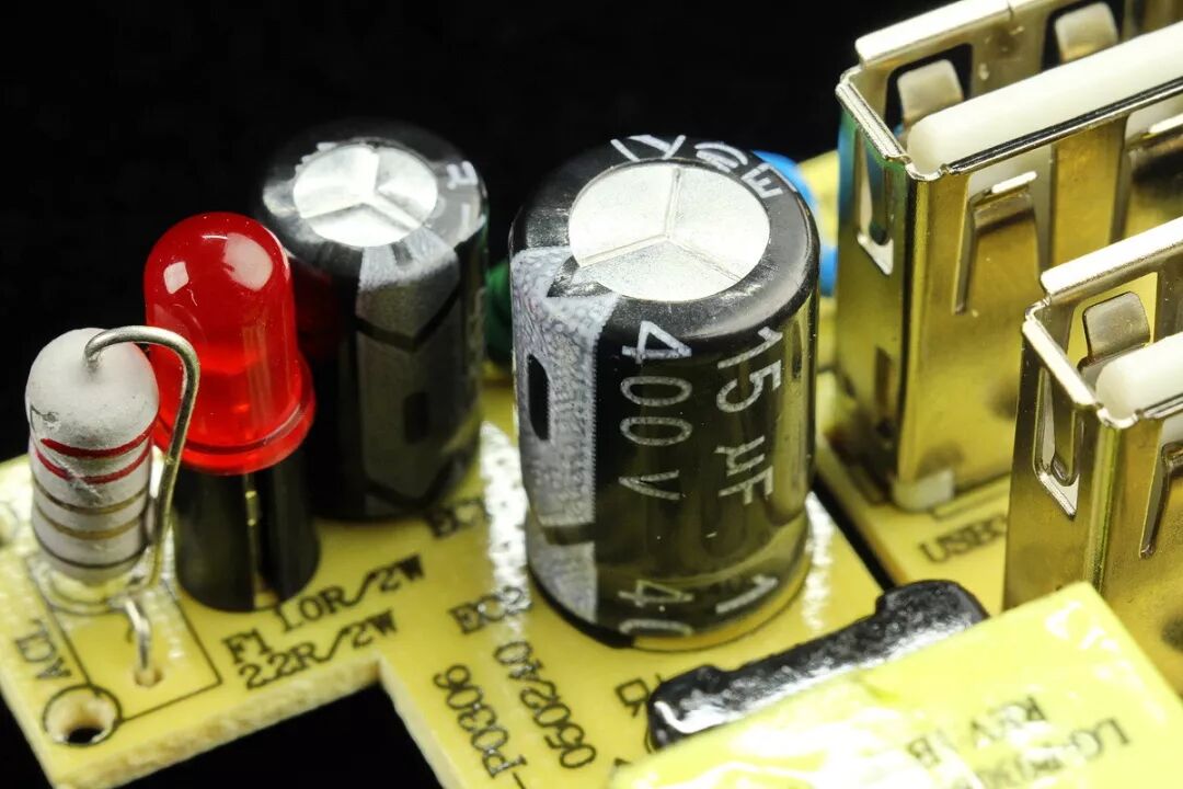 输出端USB插座铁质吸磁,配置6.3V、820μF固态电容一只。φ3mm红色LED电源指示灯。