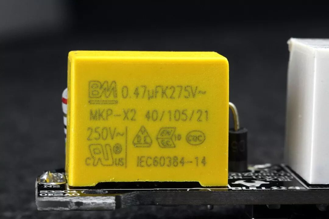 黄色方块是一只MKP-X2 阻容降压专用交流安规电容器,来自广东丰明电子科技有限公司。