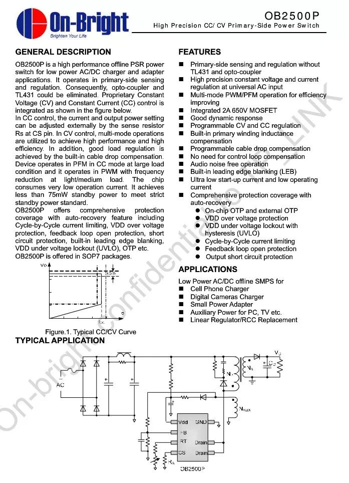 一次侧PWM芯片,12W台湾昂宝OB2500PCP,内置MOS,原边反馈,低成本方案。