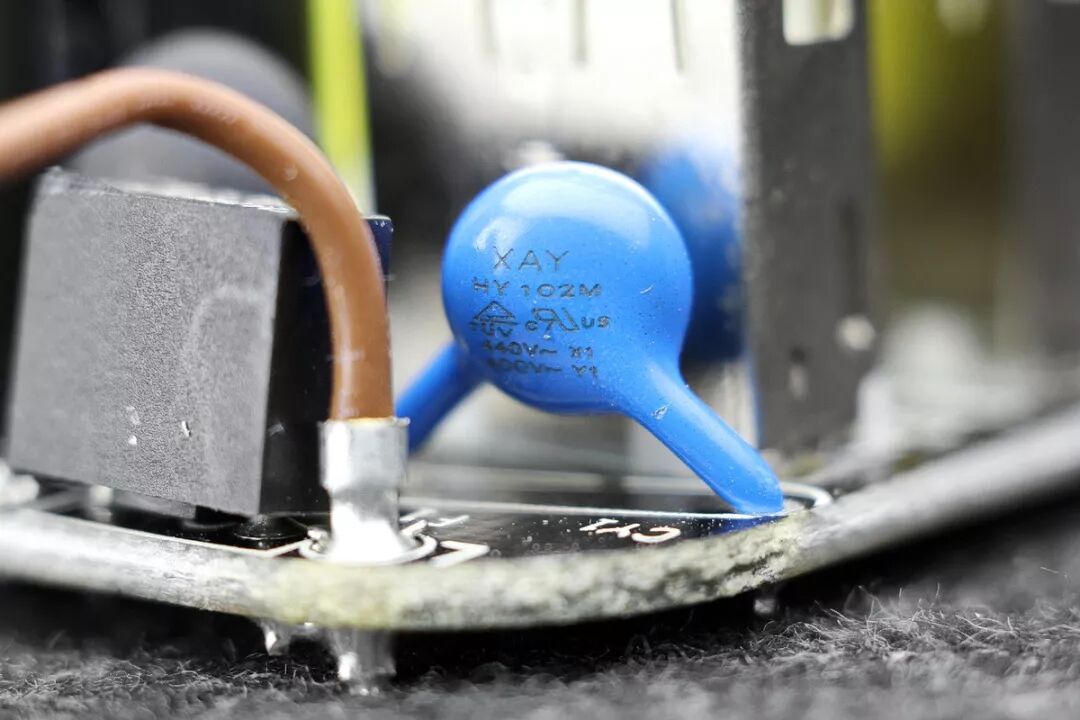 蓝色Y电容,有安全认证的正规品牌,用于抑制高频干扰,防止屏漂。