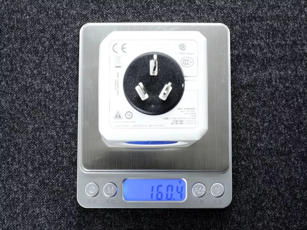 阿乐乐可是四款魔方插座中最重的,产品重量达到了160克,同时体积也是最大的,明显要比另外三款产品大上一圈。