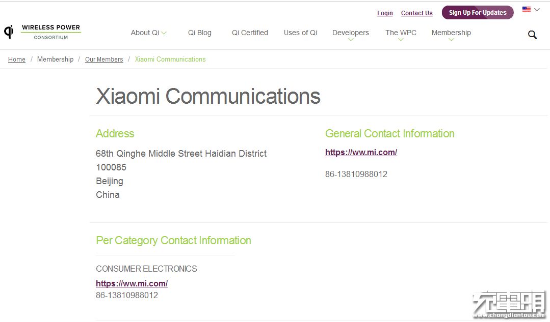 去年9月,也就是iPhone新机刚发布之际,小米正式加入WPC无线充电联盟。当时WPC会员数有244家,如今增加到466家(截止至2018年2月)。新增加的WPC会员中就包括小米通讯技术有限公司,从WPC官网可以看到,小米登记的类目为消费类电子产品,而不仅仅是手机通讯。