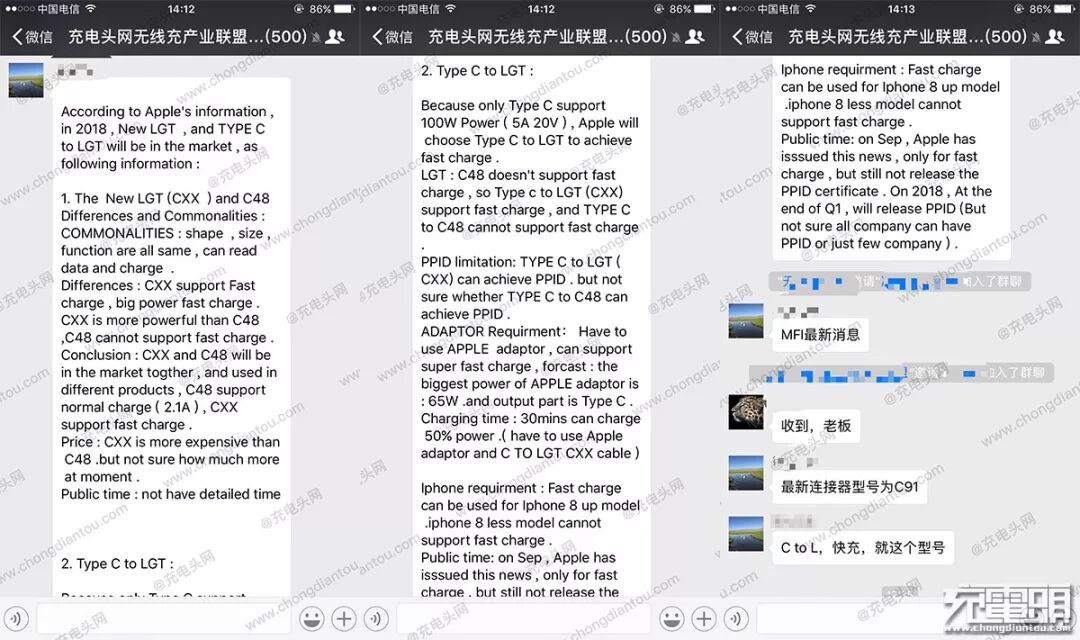 而在此之前,充电头网就得到过C to lightning开放认证的相关爆料。爆料邮件称,苹果有望在2018年第一季度末开放USB-C to Lightning第三方授权。今年4月上旬再度出现确切爆料,可信度极高。相信不久之后,苹果用户就能购买到便宜的USB-C to Lightning快充线,实现iPhone、iPad等设备USB PD快充的成本也将相应降低。