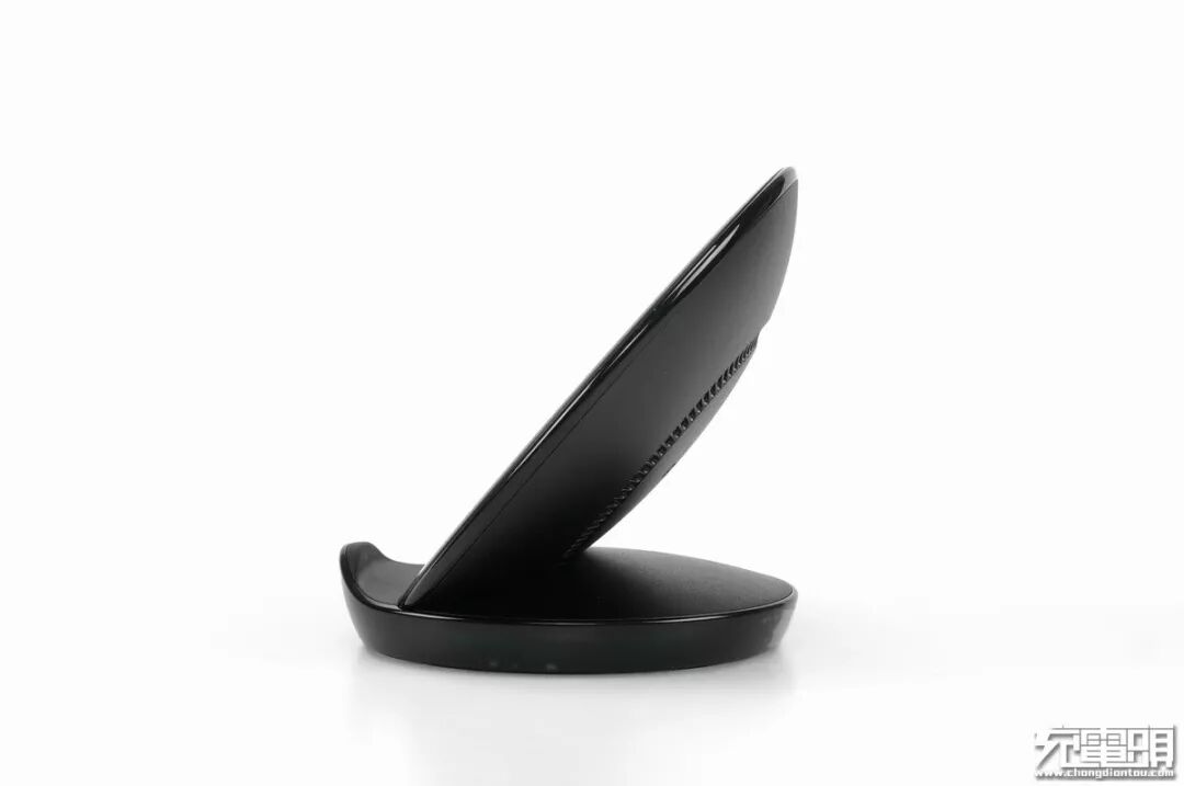 支架式充电板和底座大概呈45°角度,两者之间是固定不可折叠的。