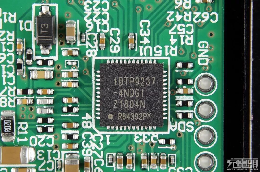 充电头网发现,产品采用了美国IDT无线充电方案,IDT P9237。