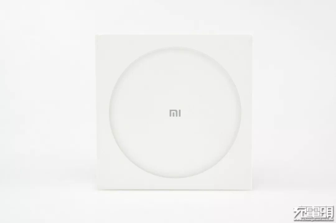 小米无线充电器包装盒正面一个字都没有,整个白色包装盒上只有产品图。