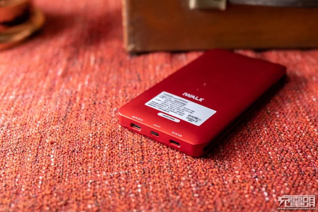 背面并没有菱格纹路,但同样经过了类肤材质处理。背部最明显的是在下方部分贴了一块产品的信息标贴,而标贴的上方则印有“iWALK”,除此之外,还分别在靠顶部印有“Quick Charging Port”和靠底部印有“DC-IN-QC 3.0”、“ON/OFF”、“DC-IN 5.0V”,这种字符都对应了不同的接口充/放电特性及按键功能。
