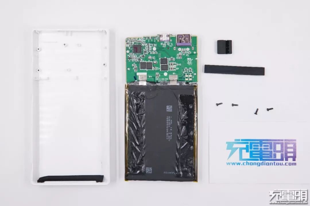 移动电源内部大概1/3的空间是电路板,剩下的2/3是电池。