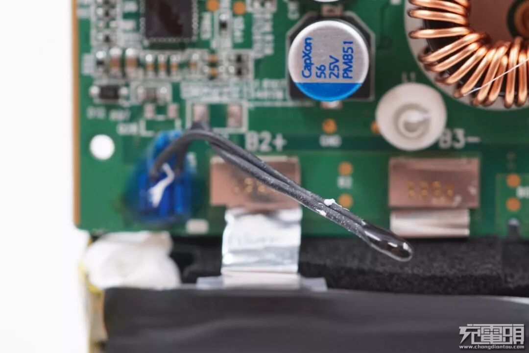 USB-C输出接口处有一颗NTC热敏电阻,能够实时检测充放电过程中端口温升情况,在温度升高的情况下可及时降低功率或者停止工作。