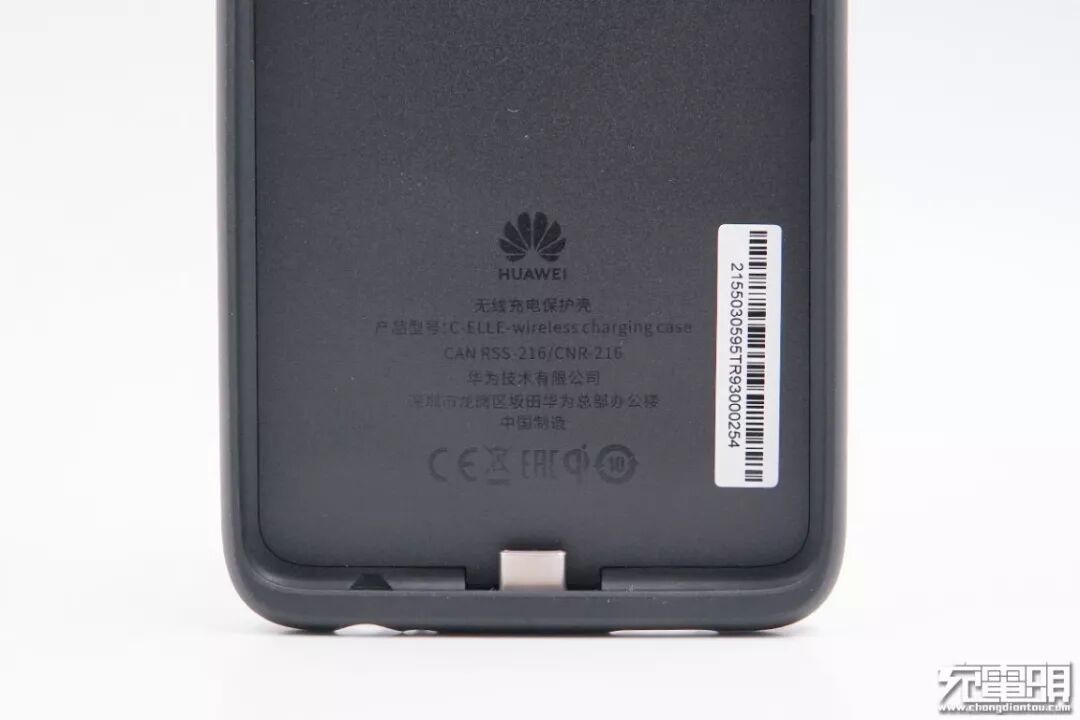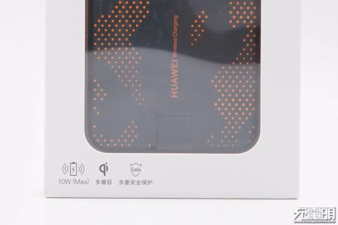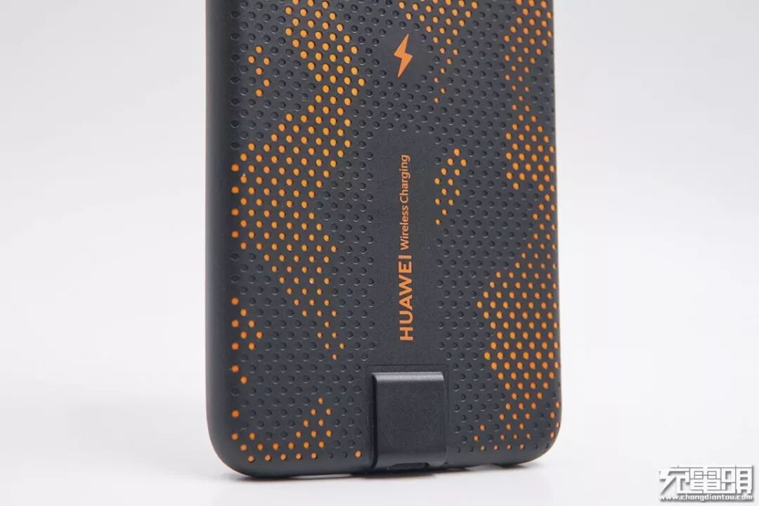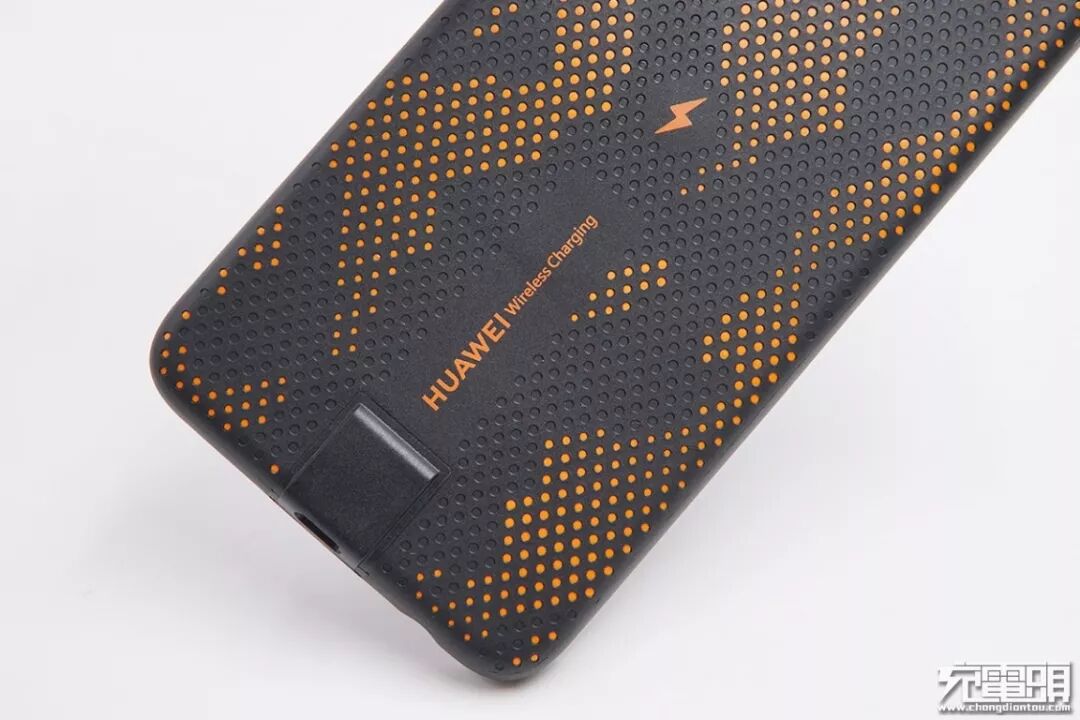 背面标有HUAWEI Wireless Charging字样,中间有一个闪电Logo。产品支持10W无线快充。