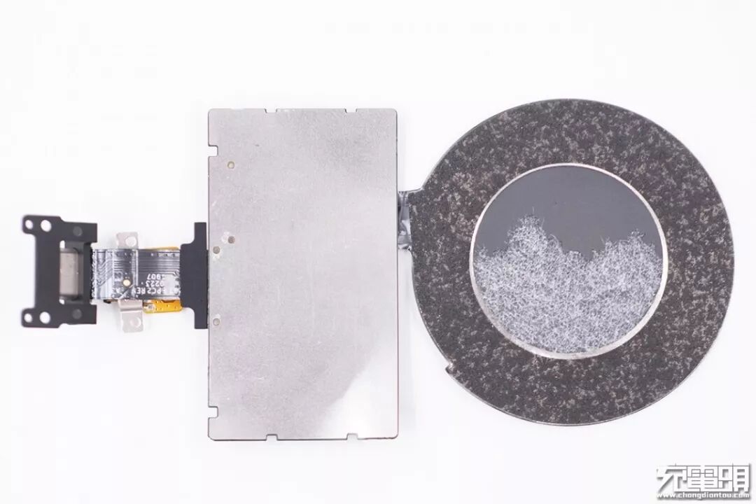 撕开背面的贴膜,露出线圈磁芯,无线充电接收电路板和充电接口。