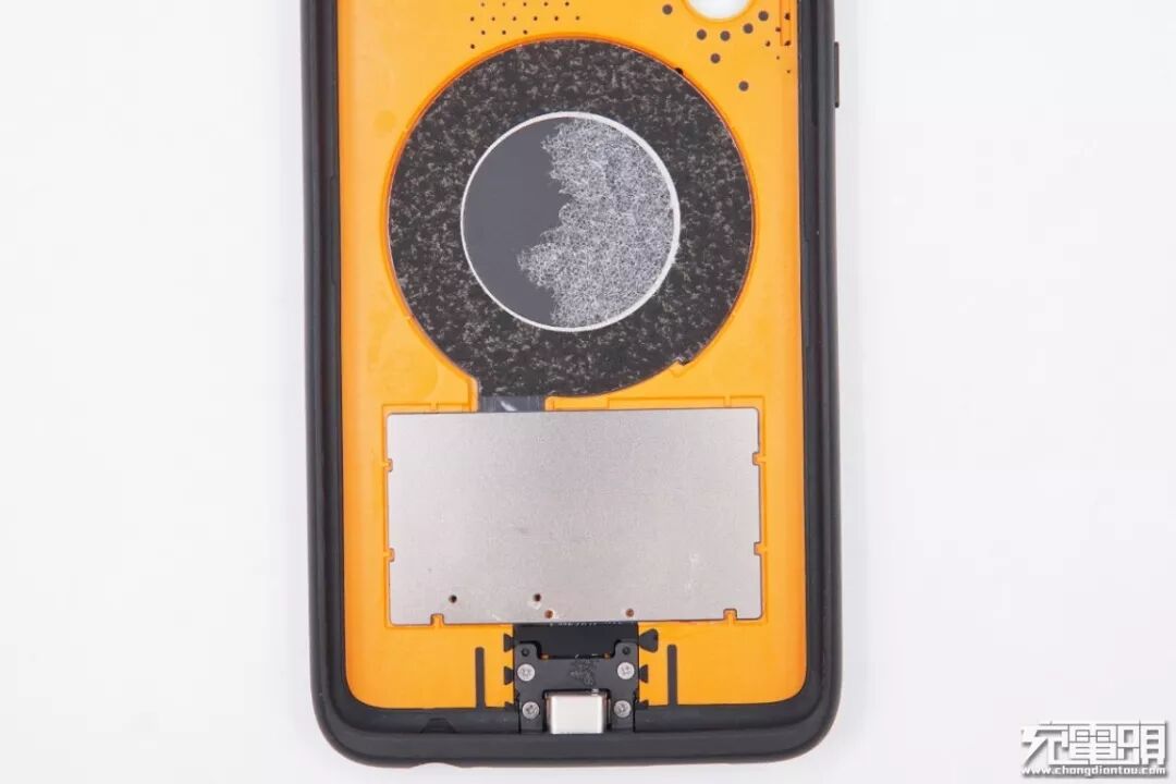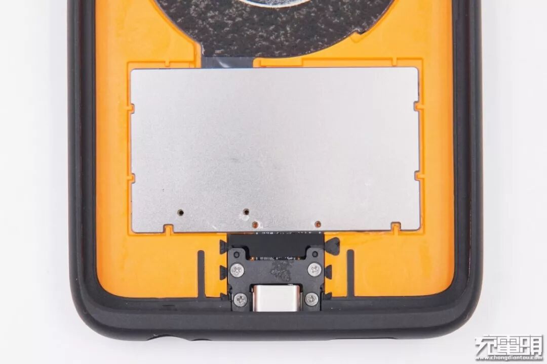 上方是无线充电接收线圈,下面接收电路板背面是金属用来均热散热。