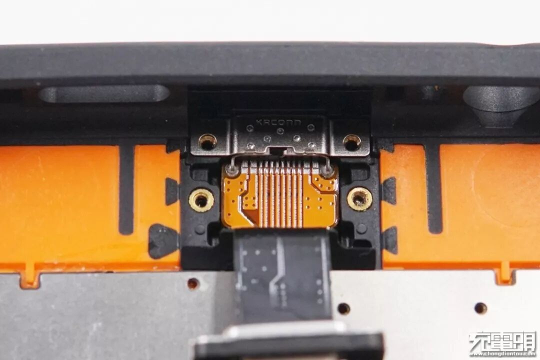 充电输入插座,排线下面是为手机充电的插头。