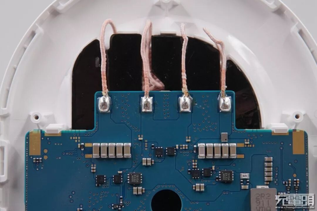 翻开电路板,背面有一颗控制单片机还有无线充电控制器。