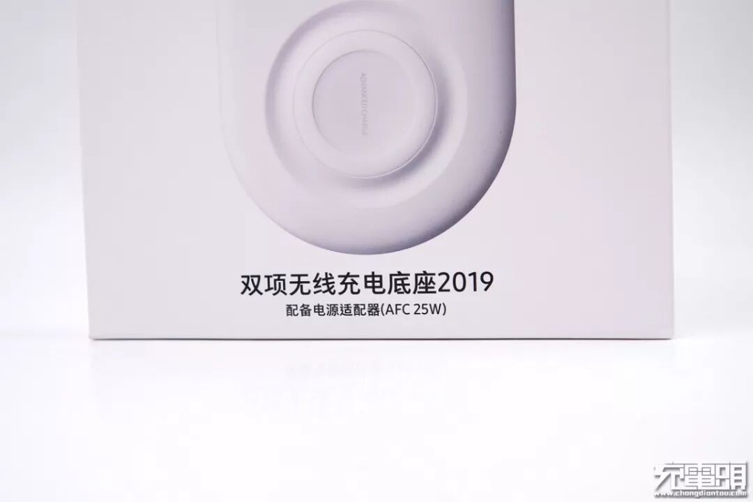 产品名称:双项无线充电底座2019。并备注:配备电源适配器(AFC 25W)。