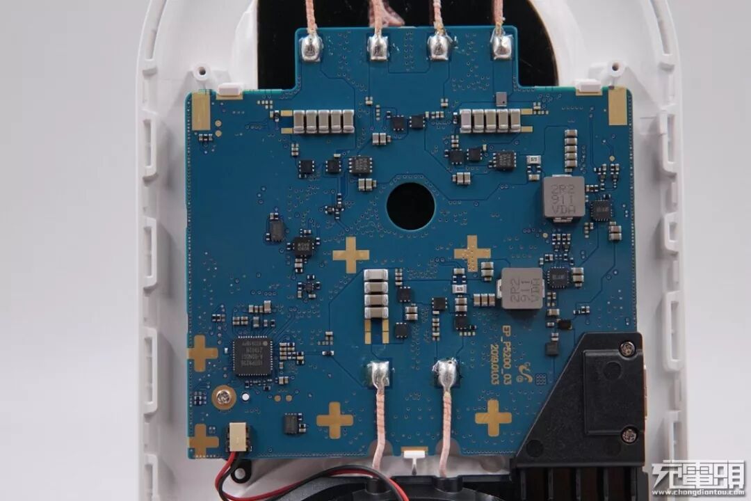 一半风扇一半电路板,充电板内部被这两样东西填满。