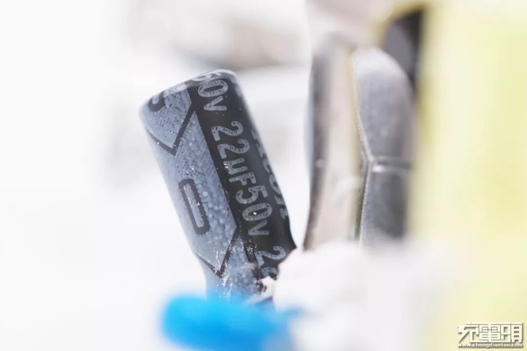 输入端另一颗滤波电解电容,规格400V 22μF,两颗并联组成122μF的容量。